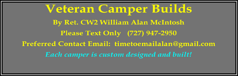 Veteran Camper Builds are specifically designed and built for the purpose of providing a place for Veterans and those in need of a place to call home, while they are "in between housing".